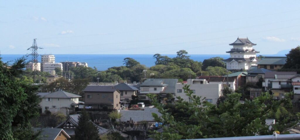 やや左正面に見える大きな木が小田原城を見守り続けてきた現存の松の木です
